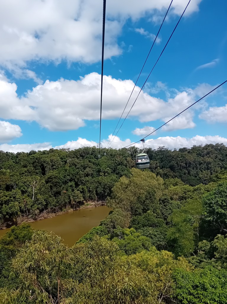 On the way back down towards Cairns I took the other favourite mode of transport, the Kuranda Skyrail. The Skyrail is a 7.5km cable-car ride through the treetops with stops again at Barron falls, though from the other side, and at a Rainforest boardwalk station. As a solo traveller on a quiet day I was lucky enough to get a car to myself the whole way down and definitely enjoyed the peaceful ride through the rainforest, making a perfect end to the day.
