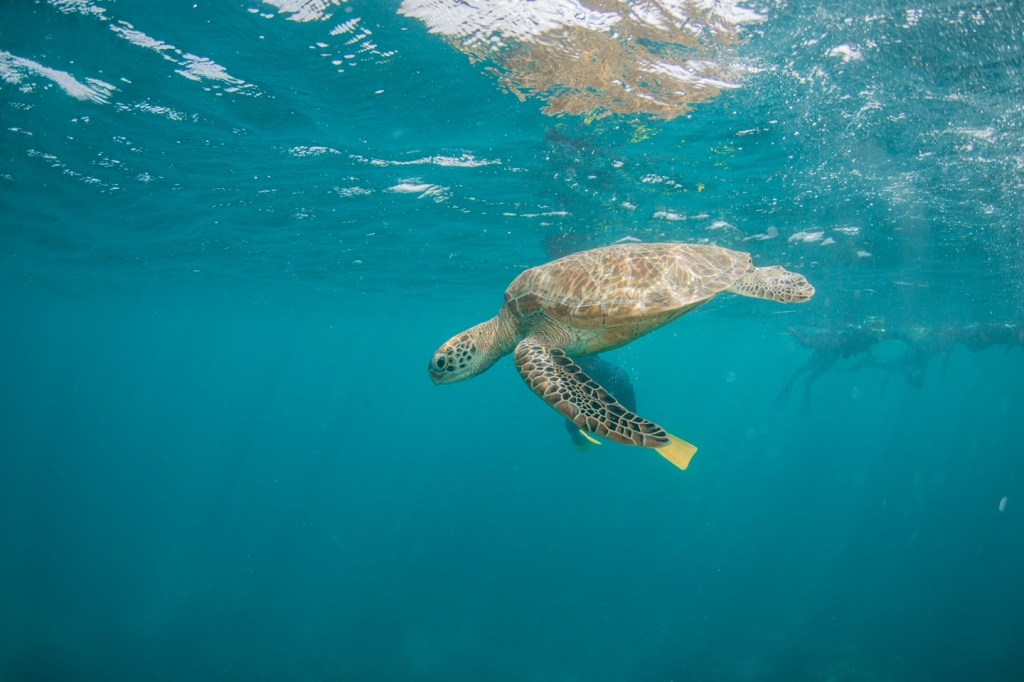 Nevertheless, I definitely didn’t feel that I missed out on the incredible coral reef views, swimming amongst the hundreds of tropical fish and much more. At the first snorkelling spot I was one of the first in the water and quickly headed out in search of some cool fish but almost immediately came across a beautiful turtle instead! Though I did try to signal to the rest of the group, the only one who saw me was the boat photographer, resulting in me being the only one on the boat to get a picture with a turtle and possibly the most iconic photo I will ever have taken. As I was so far away from the others and floating calmly nearby but not crowding, the turtle was more than happy to swim up to the surface for air right beside me before heading back down and circling underneath me for some time before slowly heading off. This is the second time I’ve swam with turtles and it just never gets old, these creatures are truly majestic. I got the chance to swim with another turtle at the second snorkel spot as well as 2 gorgeous reef sharks, making this day a truly amazing experience I’ll never forget.